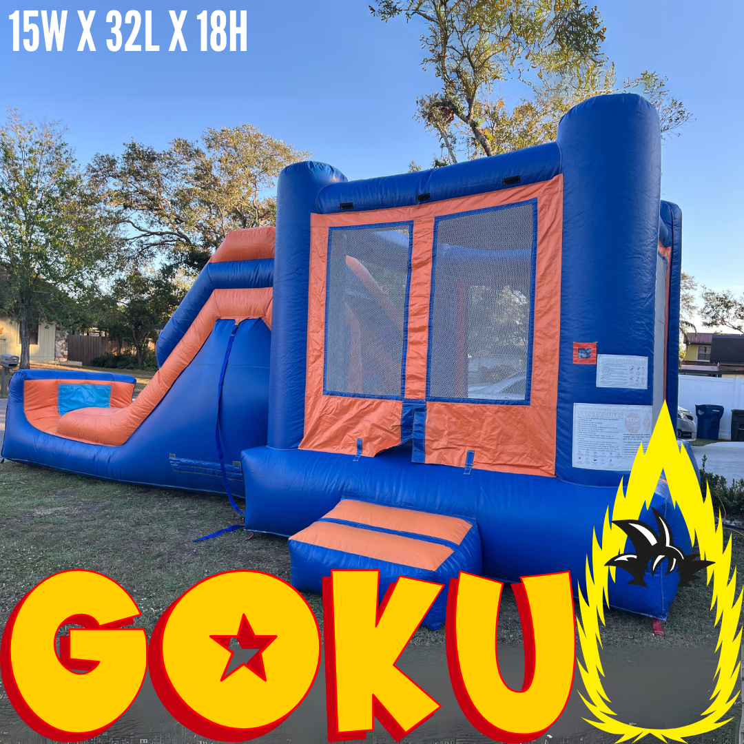 Unleash the power of fun with our vibrant Goku Combo, inspired by the legendary Dragon Ball Z! 🐉✨ This bounce house and slide combo features bold colors reminiscent of your favorite Saiyan hero, Goku. Perfect for fans of the anime, it’s sure to take your party to the next level of excitement! 🎉💥 Whether used wet or dry, this combo is a thrilling choice for all ages. 🌟🏄