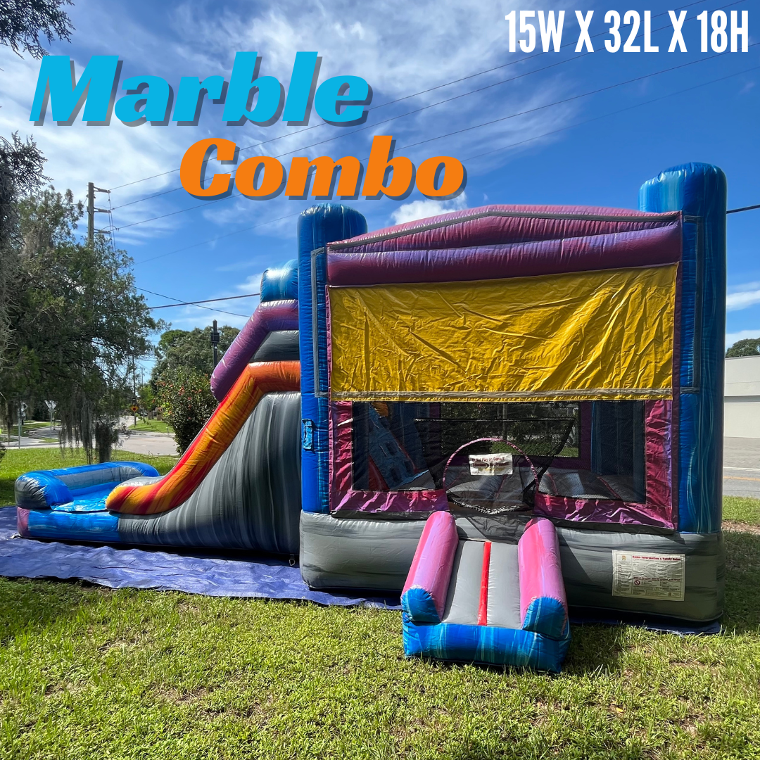 ¡Mejora tu fiesta con el elegante y estiloso Marble Combo! 🏰✨ Con 18 pies de alto, este impresionante inflable combina lo mejor de ambos mundos: ¡rebote y deslizamiento! Su elegante diseño de mármol agrega un toque de sofisticación y, al mismo tiempo, brinda diversión sin fin para los invitados de todas las edades. 🎉💨