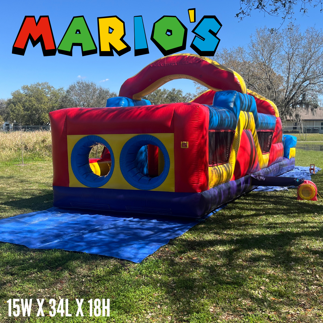 ¡Entra en el mundo de la aventura con la pista de obstáculos de Mario! 🎮🕹️ Con 15 pies de ancho, 34 pies de largo y 18 pies de alto, este emocionante inflable lleva la emoción del Reino Champiñón a tu evento. ¡Perfecto para fanáticos de todas las edades, está repleto de obstáculos, desafíos y diversión! 🎉💥